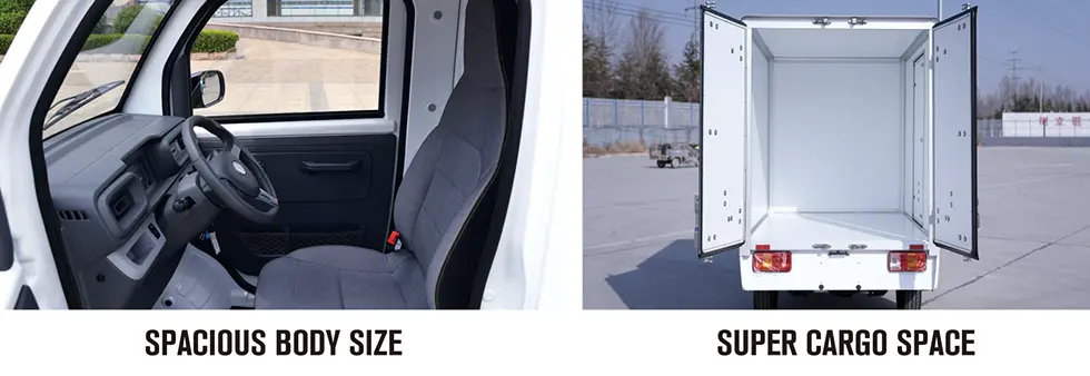 2.Easy to carry cargo,the capacity of the van can reach 3m³,With a load capacity of up to 340kg,it is truly asmall car with a large space.